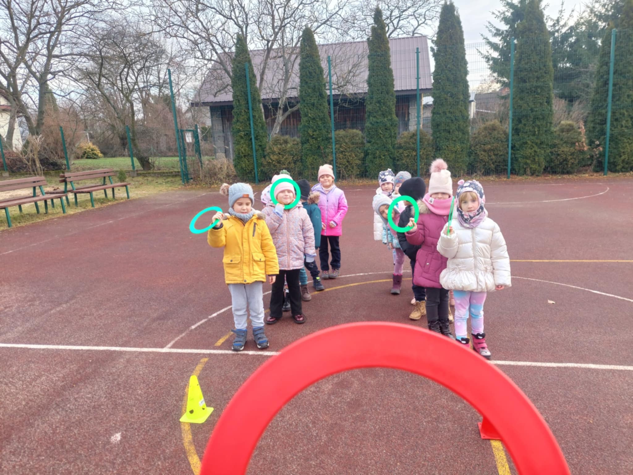 W ramach realizowanego w naszym przedszkolu projektu zdrowotnego „W codziennej zabawie i rozmowie uczymy się jak dbać o zdrowie”, dzieci regularnie uczestniczą w zajęciach ruchowych na świeżym powietrzu – niezależnie od pogody. Każda pora roku stwarza wyjątkowe możliwości do aktywności fizycznej, a przebywanie na dworze korzystnie wpływa na odporność, samopoczucie i harmonijny rozwój najmłodszych. Podczas zajęć dzieci uczestniczą w różnorodnych grach i zabawach, które nie tylko wzmacniają ich sprawność fizyczną, ale także uczą współpracy, wzajemnego wsparcia oraz przestrzegania zasad fair play. Wspólna aktywność daje im możliwość budowania relacji, rozwijania kompetencji społecznych oraz czerpania radości z ruchu na świeżym powietrzu.