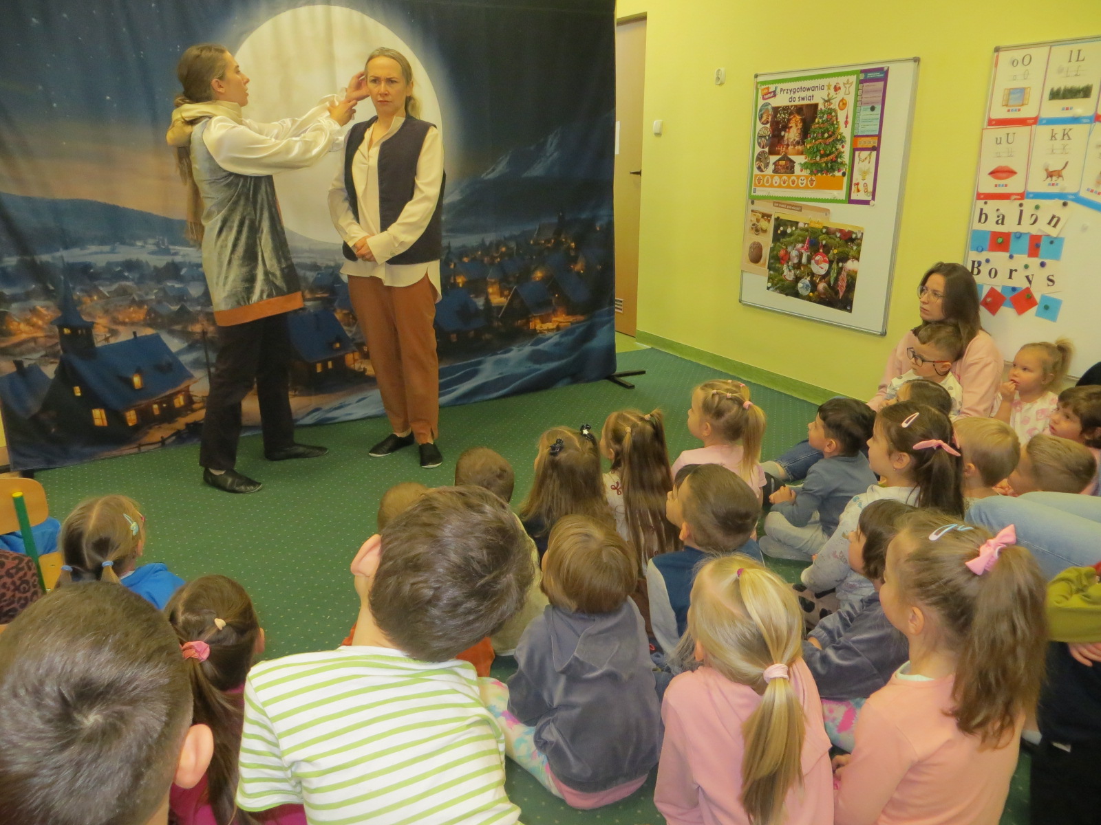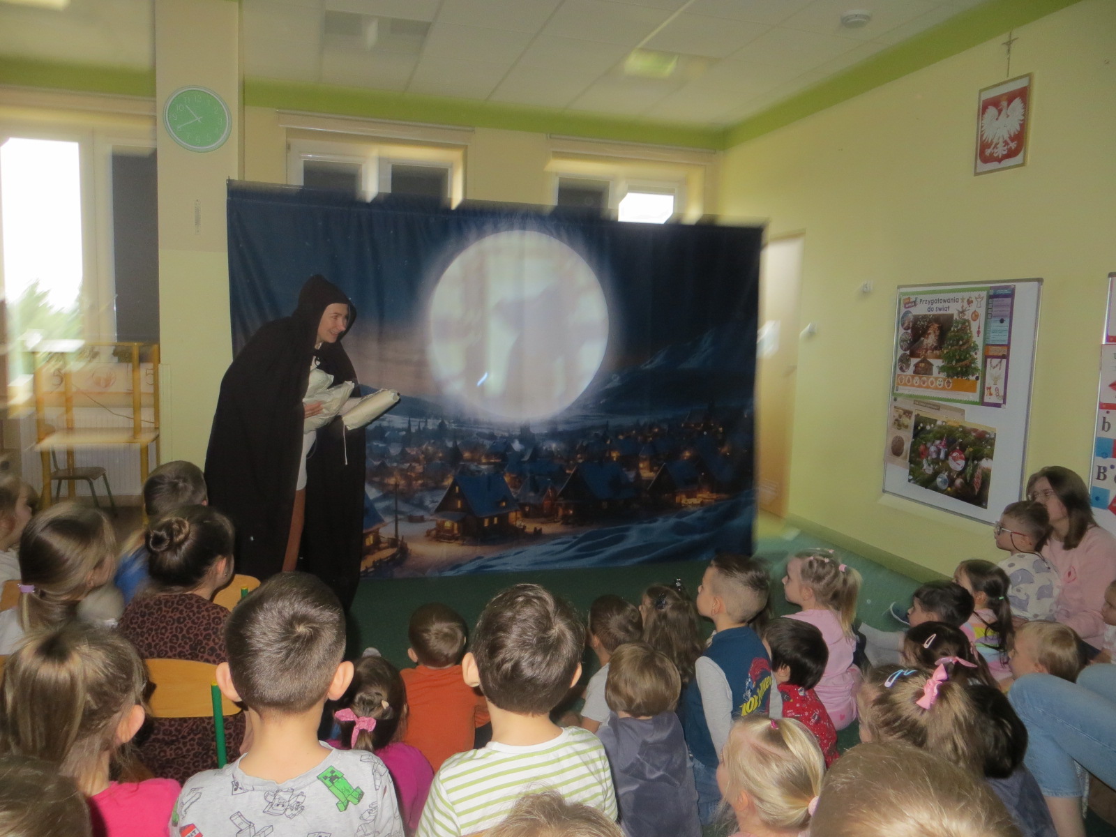W naszym przedszkolu dzieci obejrzały poruszający i pełen wartości teatrzyk pt. „Prawdziwie Święty”, który opowiadał prawdziwą historię Świętego Mikołaja – biskupa z Miry, znanego z wielkiego serca i gotowości do niesienia pomocy potrzebującym. Przedszkolaki dowiedziały się, że Mikołaj nie był postacią z bajki, lecz człowiekiem, który dzielił się swoim majątkiem z biednymi, troszczył się o innych i czynił dobro bez oczekiwania niczego w zamian. Teatrzyk przekazał dzieciom piękne i ważne przesłanie – że prawdziwe bogactwo nie tkwi w rzeczach, lecz w dobroci, życzliwości i chęci pomocy. To, co dajemy innym, zawsze do nas wraca w postaci radości i poczucia szczęścia. Dzięki temu niezwykłemu przedstawieniu dzieci mogły lepiej zrozumieć, skąd wzięła się tradycja obdarowywania się prezentami oraz jak ważne jest, aby na co dzień pamiętać o potrzebujących. Spotkanie z historią „Prawdziwie Świętego” było dla przedszkolaków okazją do refleksji i rozmów o wartościach, które warto pielęgnować.