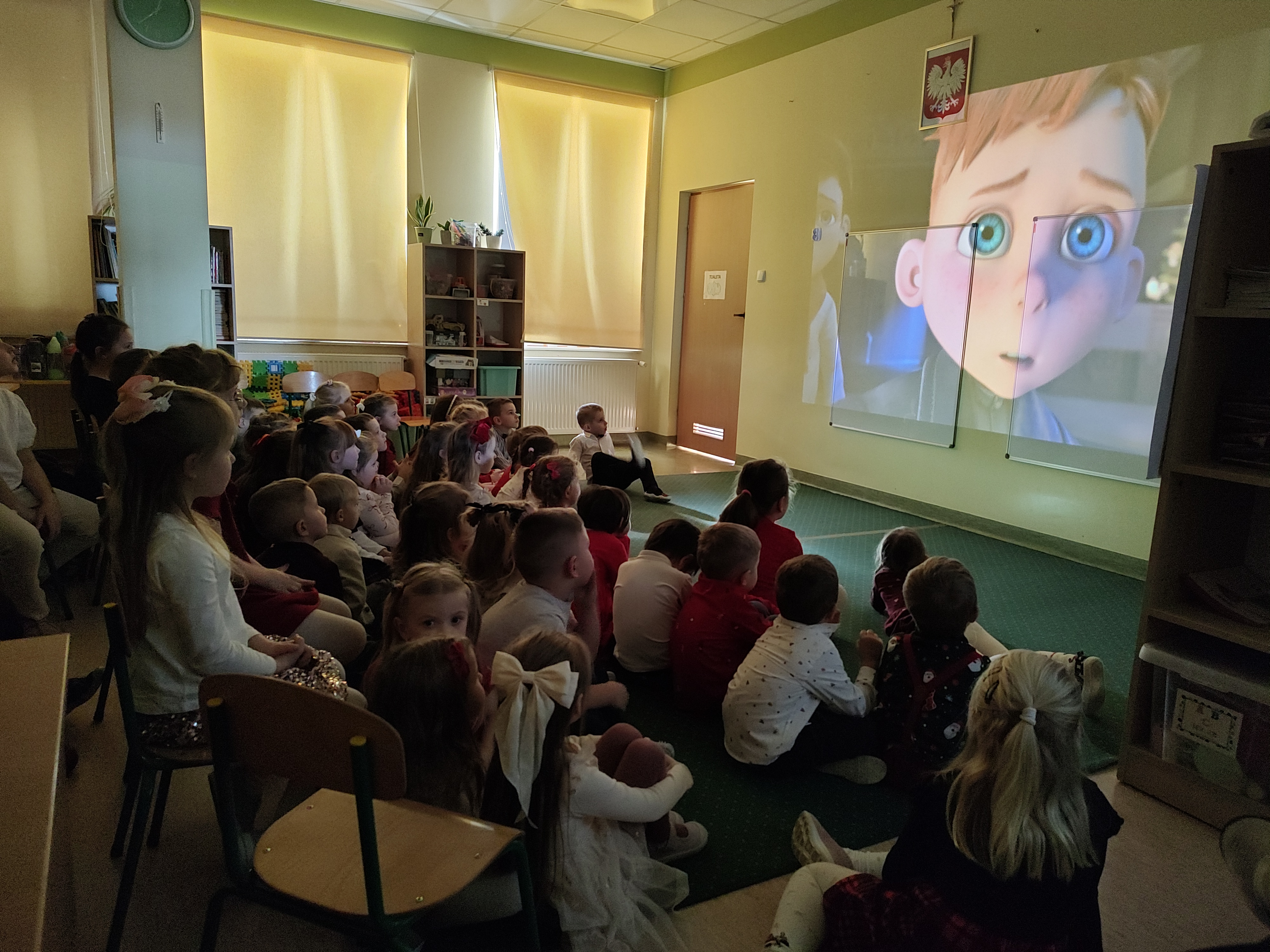 W ramach innowacji pedagogicznej pt. „Technologia prosta sprawa, przedszkolaka zaciekawia” grupa Motylki oglądała film podróżniczy o mroźnych krainach. Grupę zaciekawił, ten odmienny klimat. Dzieci zastanawiały się, jak współczesna technologia pozwala nam dokumentować podróże. W piątek, po wigilii przedszkolnej, zorganizowano popołudnie z bajkami o tematyce świątecznej z użyciem nowych technologii.