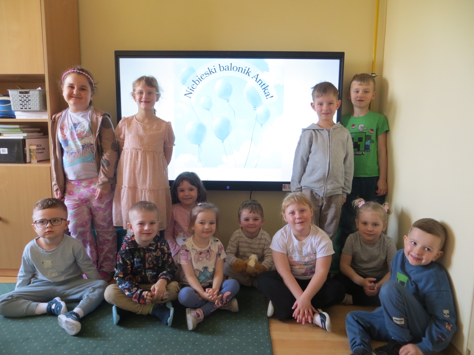 Dzieci z ogromnym zaciekawieniem wysłuchały opowiadania "Niebieski balonik Antka" historii bohatera, który w przystępny sposób przybliżyły im świat osób w spektrum autyzmu. Rozmawialiśmy o tym, że niektórzy z nas mogą intensywniej odczuwać dźwięki, zapachy czy światło, a emocje wyrażać w sposób mniej oczywisty. Dzięki tej opowieści przedszkolaki zrozumiały, że „inność” nie jest niczym strasznym – to po prostu inny, równie fascynujący sposób odkrywania i rozumienia otaczającej nas rzeczywistości.