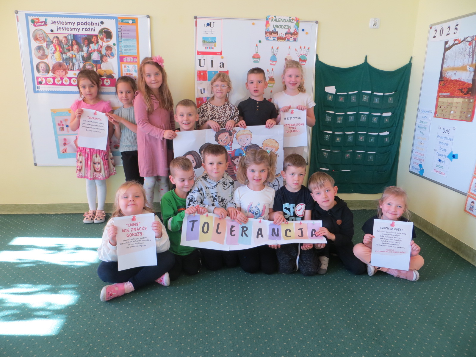 Międzynarodowy Dzień Tolerancji obchodzony jest 16 listopada, z tej okazji już dzisiaj świętowaliśmy ten dzień w naszym przedszkolu. Był to dzień  pełen rozmów, zabaw i działań, które uczyły dzieci szacunku do innych, akceptacji różnic oraz empatii. Dzieci ze starszych grup uczestniczyły w specjalnie przygotowanych zajęciach, podczas których rozmawiały o tym, że każdy z nas jest inny, ale każdy tak samo ważny. Przedszkolaki uczyły się, jak być dobrym kolegą i koleżanką oraz jak okazywać zrozumienie wocec innych. To był dzień pełen ważnych rozmów, uważności i budowania wspólnoty- bo przecież przedszkole to miejsce, gdzie dzieci uczą się nie tylko literek i cyferek, ale też jak być DOBRYM CZŁOWIEKIEM