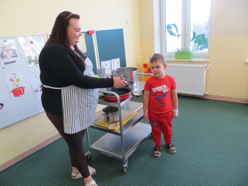 "W codziennej zabawie i rozmowie uczymy się, jak dbać o zdrowie" -spotkanie z przedszkolną kucharką.